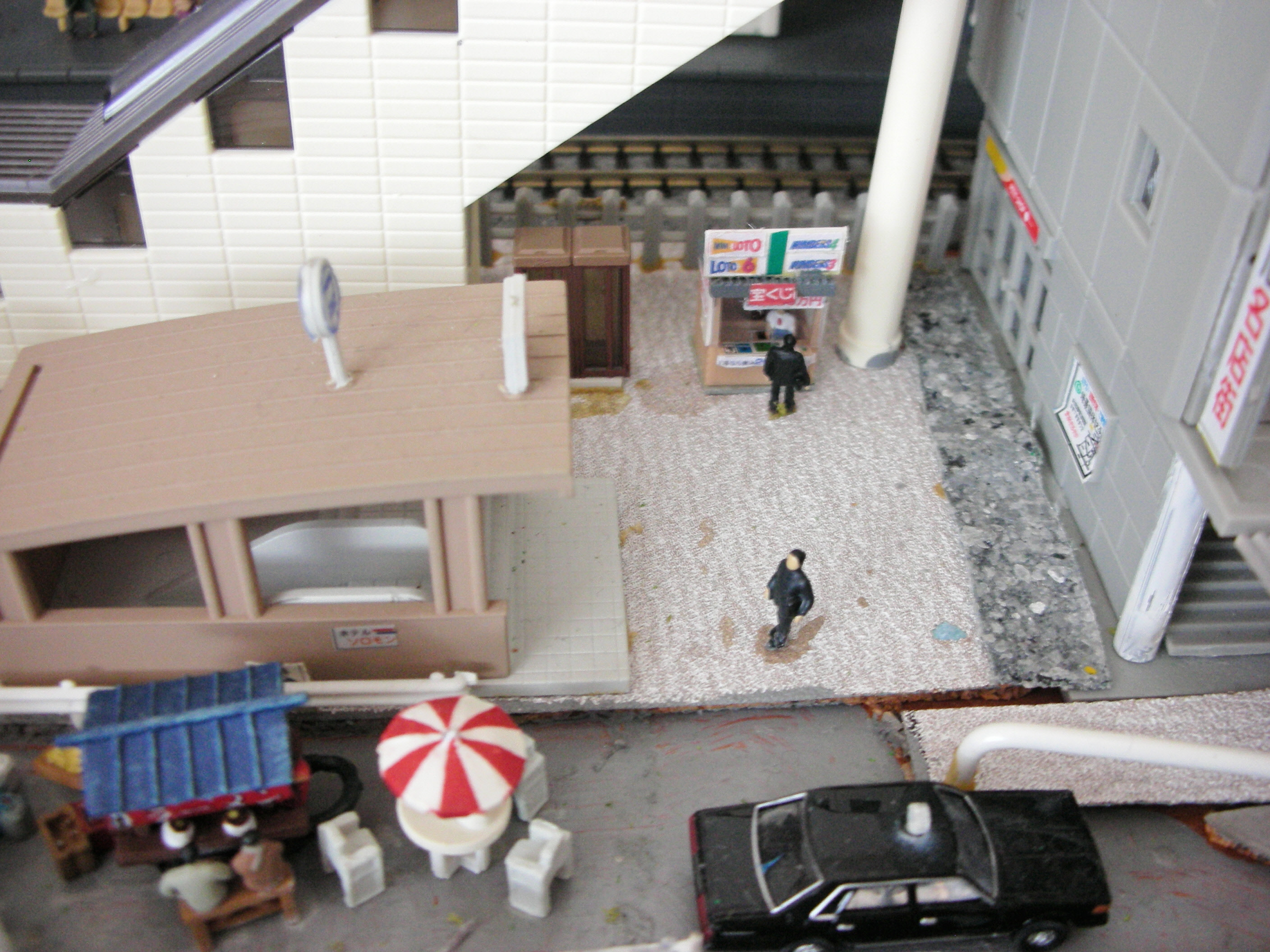 で、この見栄えの悪い宝くじ屋をレイアウトの駅周辺